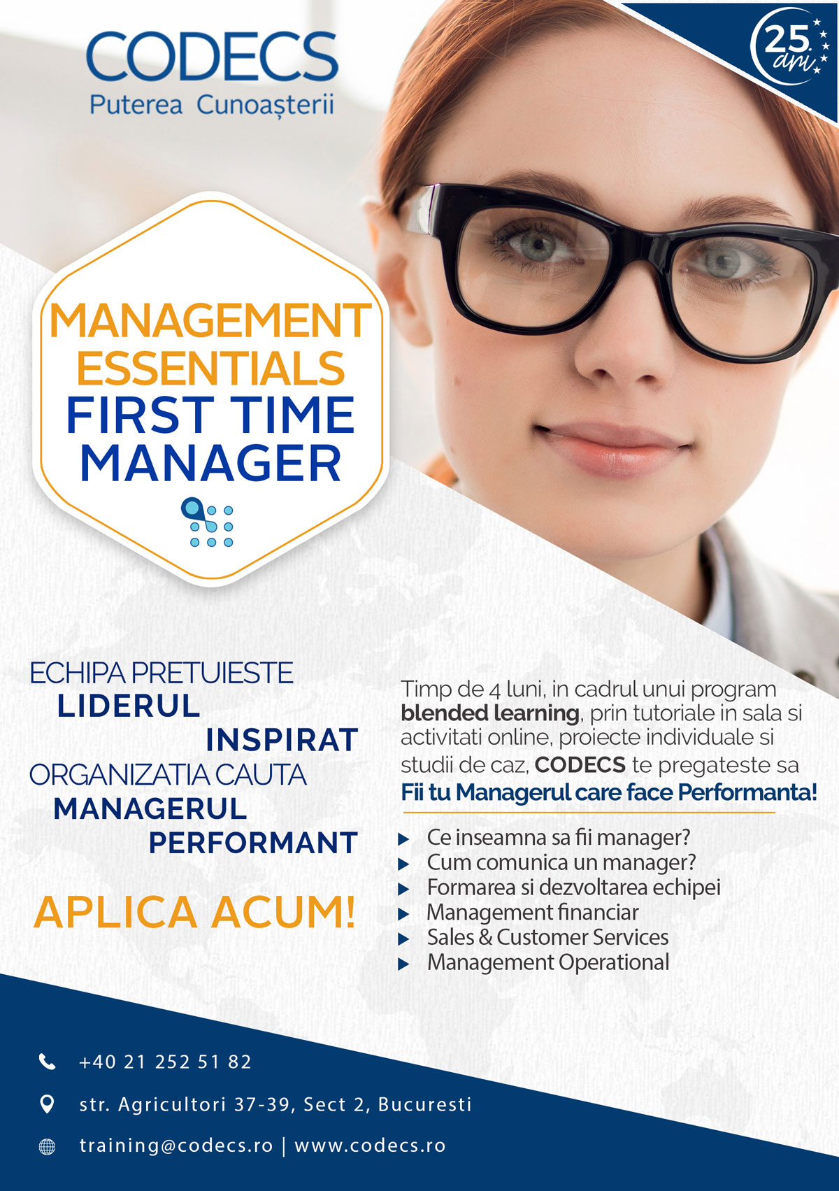 In perioada octombrie 2019 – ianuarie 2020, CODECS organizeaza cursul intensiv Management Essentials| First Time Manager!