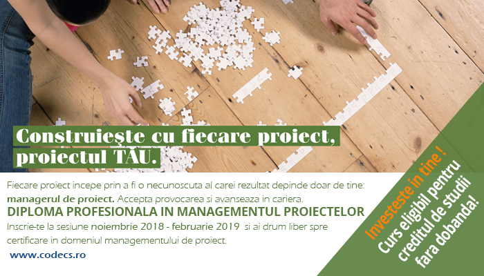 Peste 15 000 de manageri au absolvit cursurile CODECS Project Management in Romania. Va invitam sa va alaturati acestei comunitati si sa aflati mai multe detalii despre toate etapele unui proiect incepand de la initierea proiectului, risc, estimari necesare si contracte, la planificarea, formarea si conducerea echipei de proiect, executia proiectului/managementul configuratiei, pana la standarde, metodologii si reflectii asupra proiectelor.